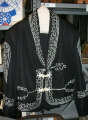 I am made of black wool with a black woven lining. Don’t I look impeccable? Sitting atop me is a white braided shawl. I originally belonged to Francisca Ramirez of Holland Michigan. This is one of many parts to a charro costume. I have friends who help me make up the costume like pants and a sombrero. The person who wears me is a horseman who practices a sport called Charrería which is similar to a rodeo. It is a national sport of Mexico where equestrian events and livestock handling take place. I am pretty awesome because I am a significant symbol of Mexican culture and feel pretty snazzy when people get to wear me. My previous owner, Francisca wore me at Latino celebrations like Cinco de Mayo in Texas and Holland, Michigan. You can find me in the Armory Basement!
