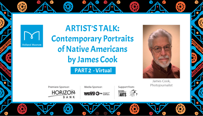 James Cook will continue the story of his exciting photographic career focusing on his photo documentary at Wounded Knee as well as more recent work. This program is virtual and requires registration on Eventbrite.