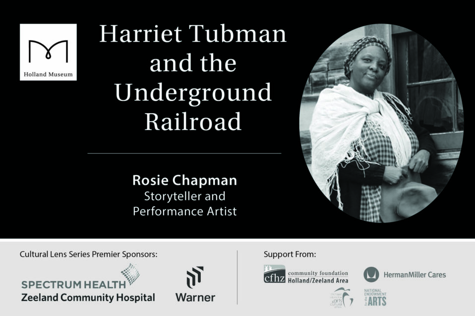 Storyteller and performance artist Miz Rosie Chapman (she/her) will share the story of Harriet Tubman and the Underground Railroad. Free, virtual family program.