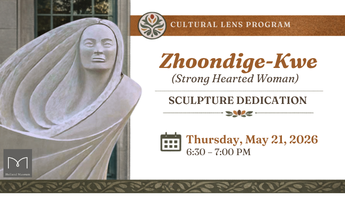 Join us at the Holland Museum for the dedication of Zhoondige-Kwe (Strong Hearted Woman) as we celebrate the sculpture’s permanent home in the Holland Museum’s collection. Carved from a single 5,000-pound block of Indiana limestone by acclaimed Anishinaabe artist Jason Quigno, this powerful work honors the resilience, leadership, and enduring strength of Anishinaabe women. Be part of this meaningful moment as art, culture, and community come together to welcome this remarkable piece.