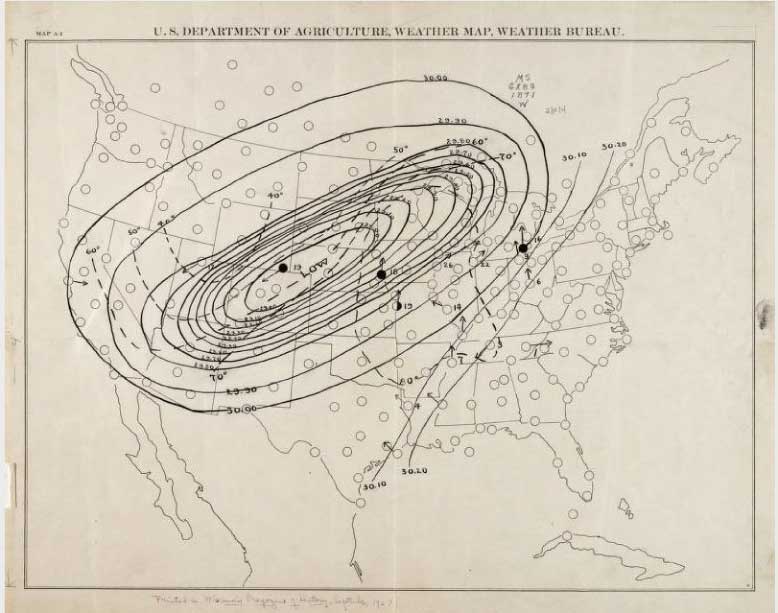 September 1871 had been incredibly dry. The entire region was in the midst of a drought—one scholarly text describes the area as “one vast powder keg.” On October 8, 1871: “The Night America Burned”, strong winds struck the Midwest, the product of a large cyclonic storm (check out the map of winds below). When the wind hit the drought-ridden Midwest, it created conditions perfect for fanning fires. Fires that may have otherwise been small or easily contained instead worsened quickly, destroying communities in their paths.